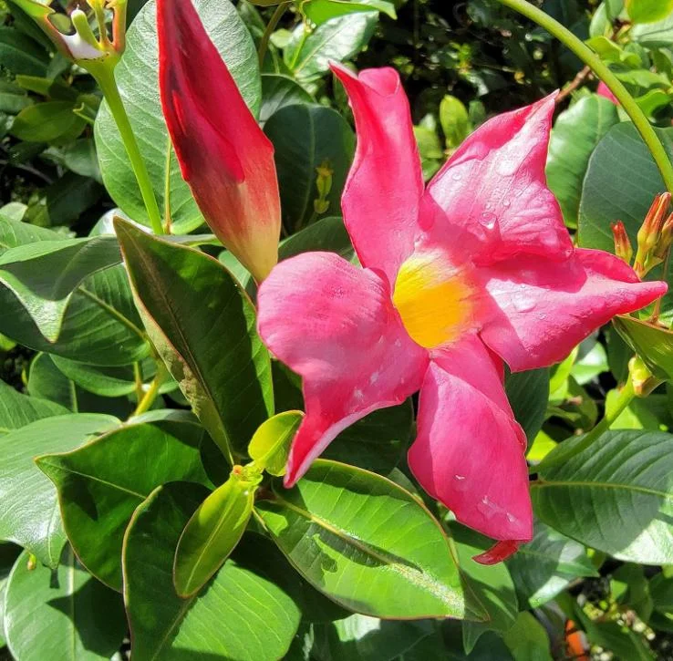 - Q: How much sunlight does it need? A: This tropical flowering vine prefers full sun to partial shade. For the most abundant blooms and vibrant red mandevilla flowers, aim for at least 6 hours of direct sunlight per day. In very hot climates, some afternoon shade can be beneficial to prevent scorching.