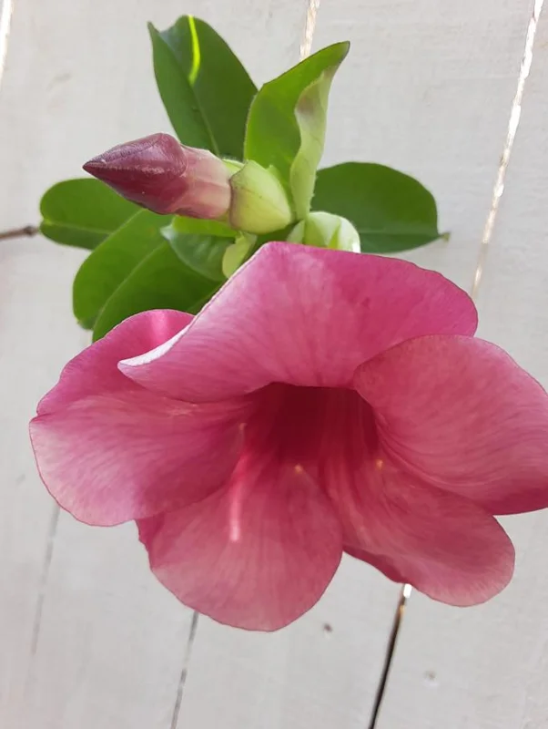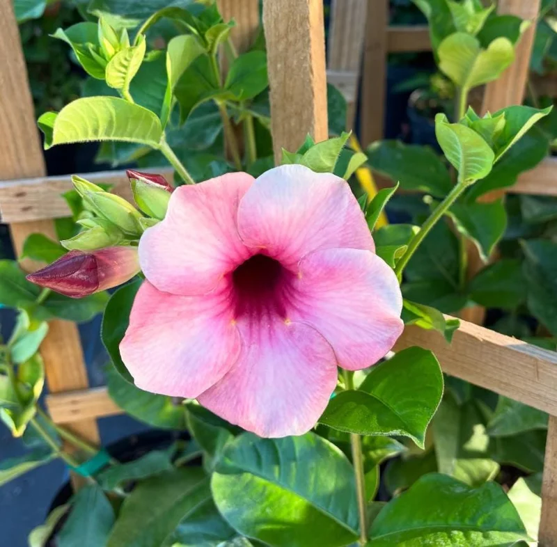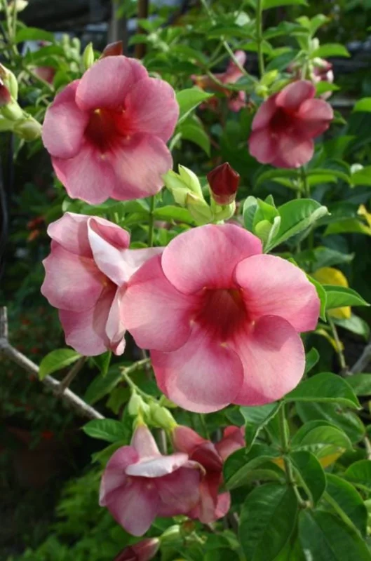As a climbing flowering vine, its mature size can vary depending on growing conditions and pruning, often reaching heights of 10-20 feet or more when given support. When grown in containers, its size can be managed through regular pruning. The plant will develop its characteristic cherry-pink to deep mauve trumpet flowers once established and mature, typically within one to two growing seasons. Expect the flowers to be a vibrant focal point in your garden, attracting various pollinators and adding a touch of tropical elegance. The plants are carefully packed to maintain moisture and protect them during transit, ready for immediate planting upon arrival.