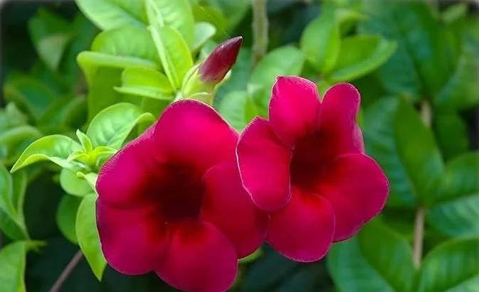 Vibrant Tropical Blooms: Enjoy a continuous display of bold, trumpet-shaped red flowers that evoke a tropical paradise. These blossoms are a true showstopper, adding rich color to your outdoor spaces and creating an inviting atmosphere for relaxation and entertainment. The vibrant red of the Allamanda Lil Red live plant makes it a garden favorite.