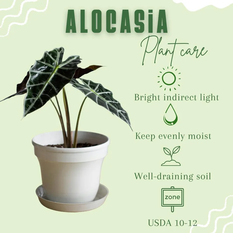 - Q: Is this plant easy to care for? Is it good for beginners? A: While Alocasias have specific needs regarding humidity and watering, they are considered moderately easy to care for. With attention to alocasia care tips, even beginners can succeed, especially when starting with a healthy, established plant like this one.