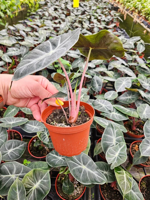 - Q: What condition will it arrive in? A: Your Alocasia Pink Dragon live plant will be carefully packaged and shipped in its 4-inch nursery pot, established and healthy, ready to thrive in your home. We ensure secure packaging to minimize stress during transit.