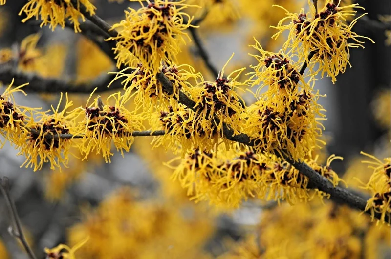Cultivar: Various (e.g., Hamamelis × intermedia ‘Jelena’, Hamamelis virginiana)