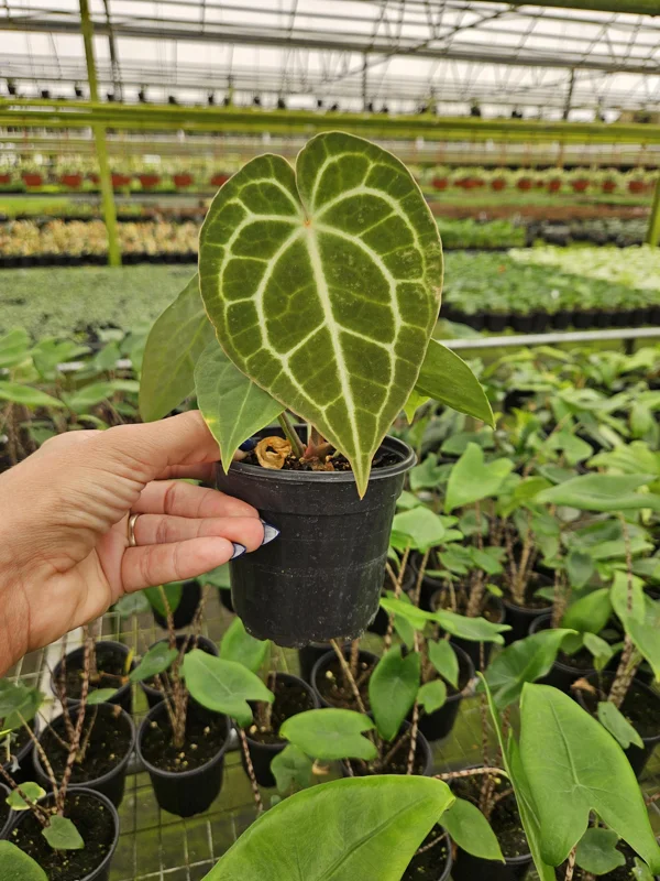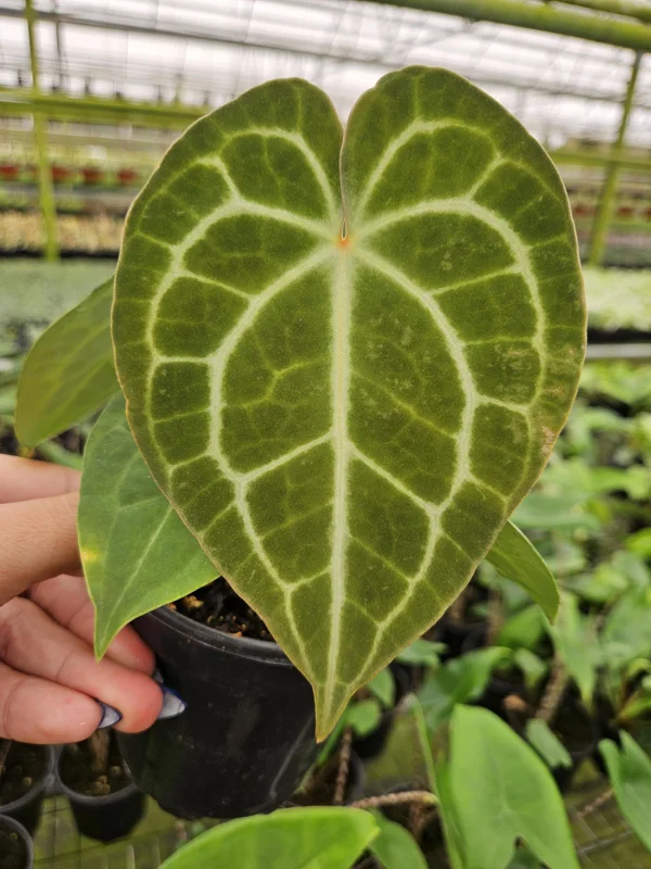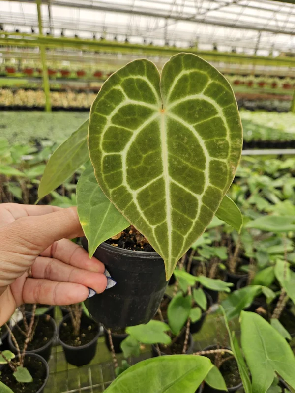 - Exquisite Foliage: The primary draw of the Anthurium Crystallinum live plant is its large, velvety, heart-shaped leaves with prominent, shimmering silver veins. This striking contrast creates a sophisticated and luxurious look, making it a focal point in any room.