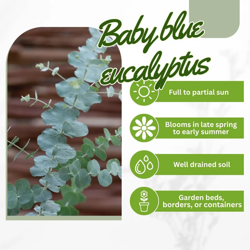 - Q: Is this plant easy to care for? A: Yes, this plant is considered relatively easy to care for once established. It requires well-draining soil and moderate watering, making baby blue eucalyptus care manageable for most gardeners.