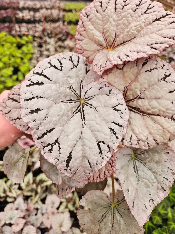 - Stunning Variegated Foliage: The most prominent feature of this Begonia is its incredible white and gray variegated leaves. Each leaf is a work of art, providing a sophisticated and elegant touch to any room. This unique indoor plant stands out amongst more common houseplants.