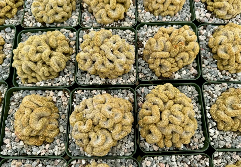Unique Aesthetic Appeal: The primary benefit of the Mammillaria elongata ‘Cristata’ is its highly unusual and striking appearance. Its brain-like convolutions create an instant focal point and add an architectural element to any indoor or outdoor space. This rare crested cactus is unlike typical cacti, ensuring it stands out.