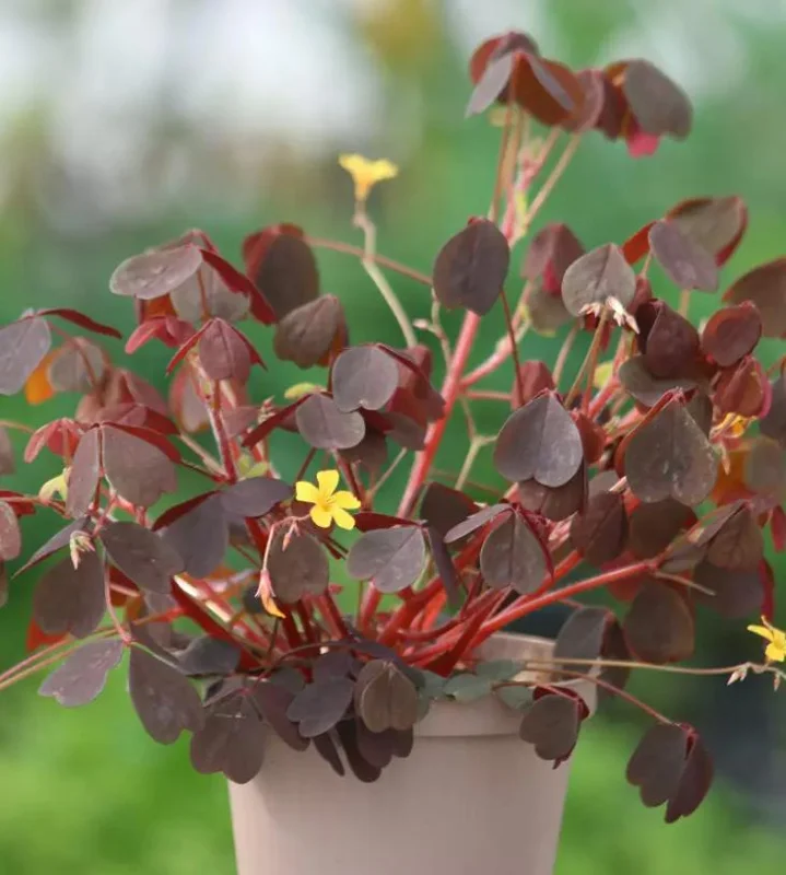 - Q: Is this an indoor or outdoor plant? A: The burgundy yellow oxalis live plant is versatile and can be grown both indoors and outdoors. It makes an excellent indoor oxalis plant or a charming addition to outdoor containers and garden beds in appropriate climates.