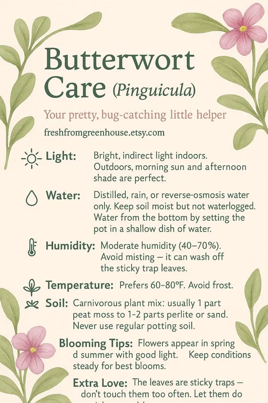 - Q: How much sunlight does it need? A: This butterwort thrives in bright, indirect light. Avoid direct, intense afternoon sun, which can harm the plant. Filtered light from an east or west-facing window is ideal.