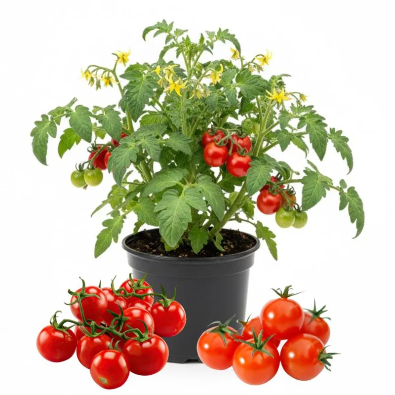 - Q: Is this plant easy to care for? A: Yes, growing cherry tomatoes is generally considered low-maintenance. They require consistent watering, plenty of sunlight, and benefit from staking or caging. They are a great choice for beginner gardeners.