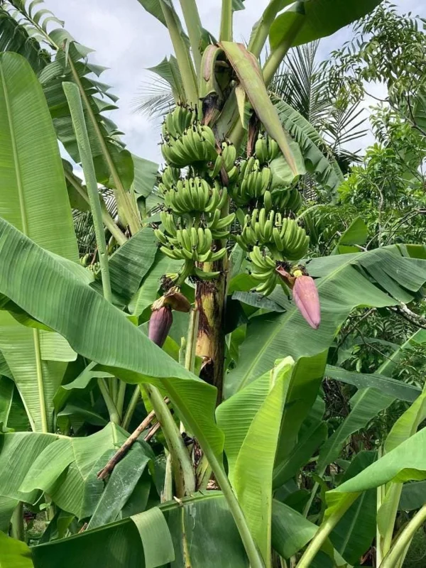 - Beautiful Tropical Foliage: Even before fruiting, the large, lush green leaves of the banana plant add a dramatic and exotic touch to any space. It creates a vibrant, tropical ambiance whether on a patio, in a sunroom, or as part of a garden landscape.