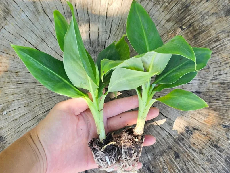 Each order includes one healthy Double Mahoi Banana plant, arriving as a well-established starter plant. These plants typically measure between 4-6 inches tall at the time of shipment, making them easy to plant and quick to adapt to their new environment. They are shipped bare root, with their roots carefully wrapped in damp material to ensure hydration and safe transit, guaranteeing they arrive ready for immediate planting. This method minimizes transplant shock and promotes robust growth from day one.