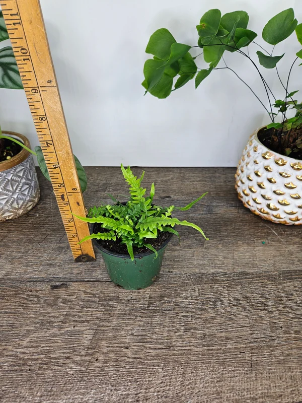 The dragon’s tail fern live plant you receive is a healthy, established specimen cultivated in a 4-inch nursery pot. At this stage, the plant typically features several elongated fronds that can range from 4 to 8 inches in length, depending on maturity and recent growth. These ferns have a moderate growth rate, gradually expanding their elegant fronds over time. When mature, a well-cared-for Asplenium ebenoides can reach a height of 10-18 inches with a similar spread, forming a beautiful, dense clump of foliage. It ships as a fully rooted plant in its original pot with soil, ensuring minimal transplant shock and immediate readiness for display or integration into a larger planter.