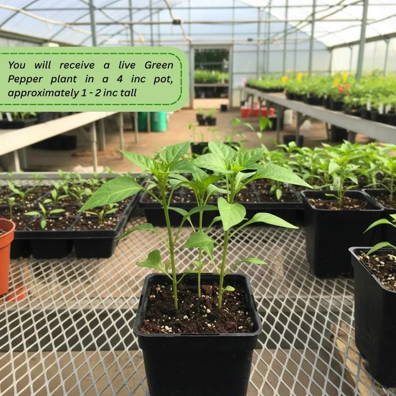 - Q: How big do these green pepper plants get? A: These starter plants are 1-2 inches tall upon arrival. With proper care, they typically grow to a mature height of 18-30 inches and spread about 12-24 inches wide, making them suitable for both garden beds and containers.
