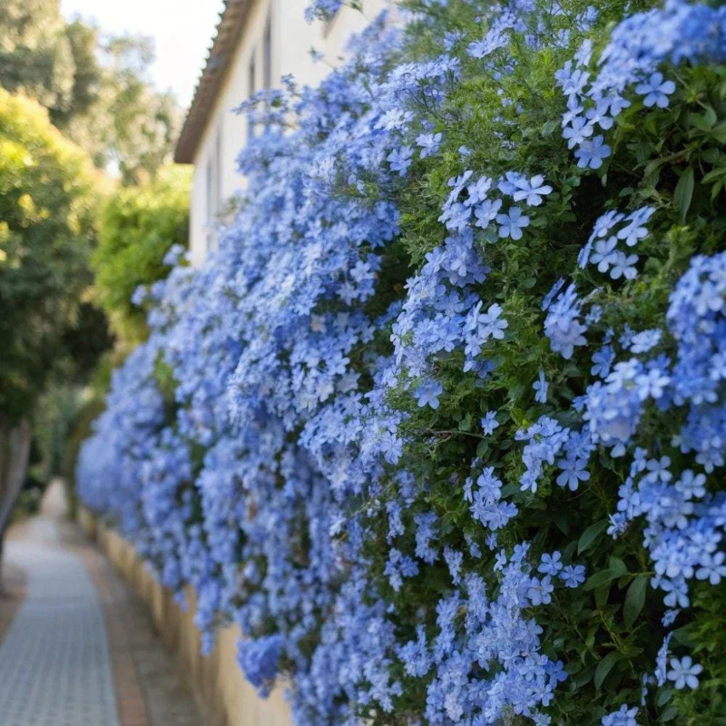 When you are growing plumbago, it is important to consider its mature size and growth habit. It can be trained as a climbing vine with support, or maintained as a bushy shrub or groundcover. The plants typically begin to bloom in late spring and continue throughout the summer and fall, providing an extended period of vibrant blue flowers. Each plant will develop a strong root system, allowing it to establish quickly in well-drained soil. For optimal results, plant them in a location where they have enough space to spread or can be easily pruned to your desired size. The foliage remains green and attractive even when not in bloom, adding year-round interest in warmer climates. These perennial flowers outdoor will be a striking addition to your landscape.