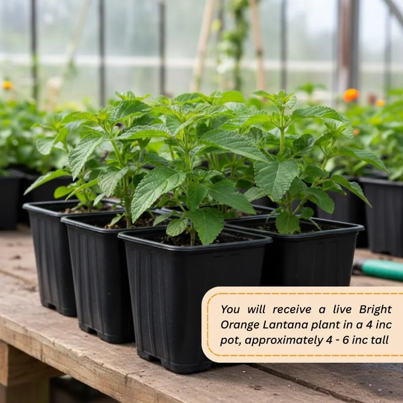 This offering includes two healthy lantana live plant specimens, each measuring approximately 4-6 inches tall from the base of the plant to the top of its foliage. They are supplied in a 4-inch nursery pot, providing a good start for transplanting into larger containers or directly into your garden beds. Lantana typically grows as a compact flowering shrub, reaching a mature height of 1-3 feet and a similar spread, depending on growing conditions and pruning habits. The growth habit supports its placement in borders, mixed planters, or small garden areas, maintaining steady flowering through warm seasons with routine care. Expect these plants to establish quickly and begin producing their signature bright orange blooms shortly after planting, continuing throughout the warm months. This makes it a perfect patio lantana.