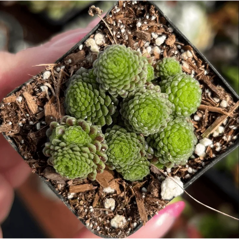 - Potential for Blooms: While primarily grown for its foliage, the Monanthes polyphylla can produce delicate flowers ranging from yellow to purple to brown, adding an unexpected pop of color and charm to your plant.