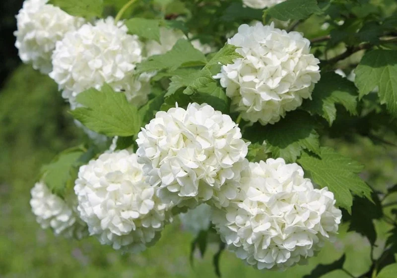 For best results, plant your Viburnum Opulus shrub in early spring or fall to allow for strong root establishment before extreme temperatures. It prefers full sun to partial shade; while it tolerates some shade, the most prolific blooms occur in full sun exposure. Aim for at least 6 hours of direct sunlight daily. The Old Fashioned Snowball thrives in moist, well-drained loamy soil, although it is adaptable to various soil types. It prefers a neutral to slightly acidic pH. When planting, space individual shrubs 5–10 feet apart, depending on your desired hedge density or if you are growing it as a standalone specimen. Regular watering is crucial during the first growing season to help the root system develop. Once established, water during prolonged dry periods, ensuring the soil remains consistently moist but not waterlogged. This shrub is hardy in USDA zones 3–8, tolerating both cold winters and warm summers. Fertilize in early spring with a balanced, slow-release granular fertilizer formulated for flowering shrubs. Prune immediately after flowering to maintain shape and remove any dead or crossing branches.