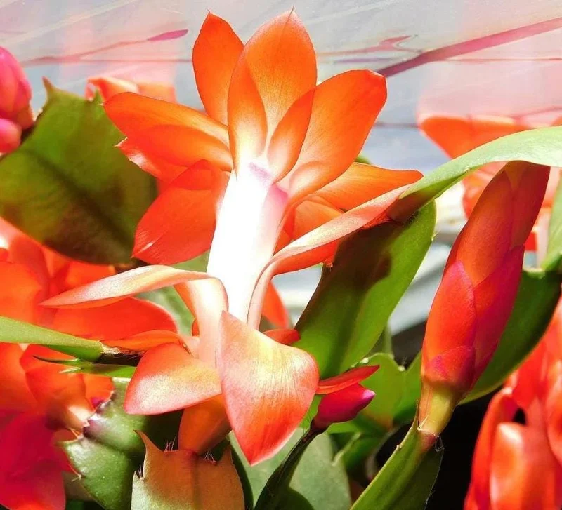 - Q: How much sunlight does an Orange Christmas Cactus need? A: Your Schlumbergera plant care requires bright, indirect light. Avoid direct sunlight, especially harsh afternoon sun, which can burn its leaves. An east-facing window or a spot a few feet from a south/west window is ideal.