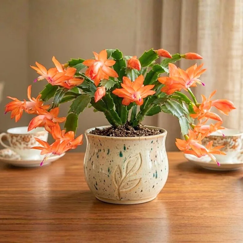 - Compact & Versatile Size: Arriving in a 4-inch pot, this Orange Thanksgiving Cactus live plant is perfectly sized for windowsills, desks, shelves, or as part of a larger plant arrangement. Its moderate size allows it to fit comfortably in smaller spaces while still making a significant visual impact.
