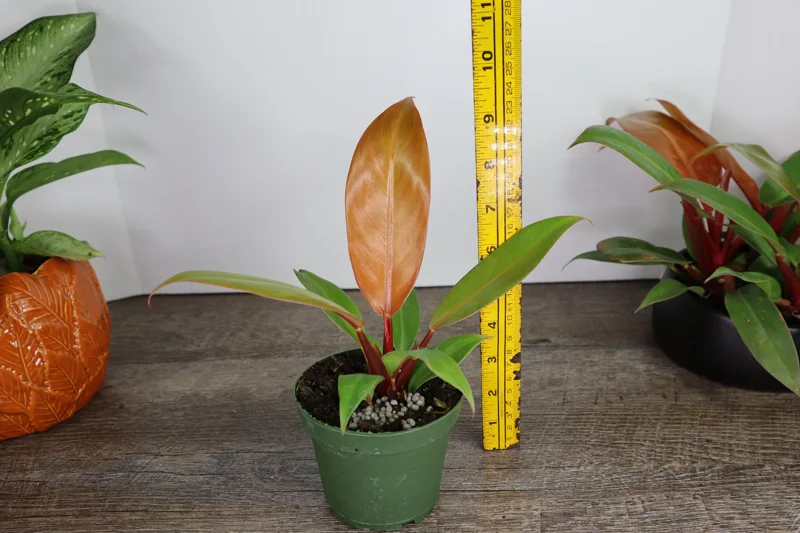 This offering includes one healthy Philodendron Prince of Orange live plant, carefully cultivated and shipped in a 4 inch nursery pot. The plant’s height will typically range from 6 to 10 inches from the base of the pot, depending on its growth stage, with a similar spread. This makes it an ideal size for immediate display on a desk, shelf, or as part of a larger plant grouping. The Prince of Orange is a relatively compact grower compared to other philodendrons, generally reaching a mature height of 2-3 feet indoors, with a similar width, making it a manageable and attractive indoor philodendron for most living spaces. Its growth rate is moderate, offering a steady display of new, colorful leaves.
