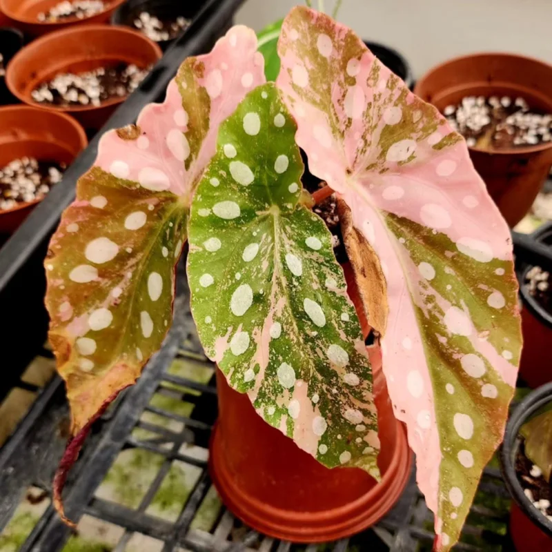 A: Your pink polka dot begonia live plant will arrive as a healthy, live starter plant, carefully packaged to ensure its safety during transit. It will be rooted and ready for you to pot in your chosen container.