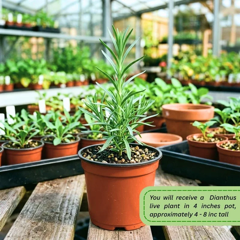 This offering is for a vibrant pink red dianthus live plant, which typically arrives at a height of 4 to 8 inches. These plants are robust and well-rooted, ready for immediate planting in your garden or container. Dianthus plants generally mature to a height of 6 to 12 inches with a similar spread, forming attractive, mounding clumps of foliage. They are shipped in a nursery pot, ensuring the root system is protected and healthy upon arrival, facilitating an easy transition to your chosen planting location. With proper care, you can expect these perennial flowers to establish quickly and begin producing their beautiful blooms.