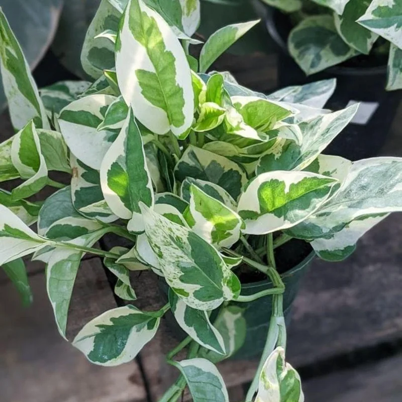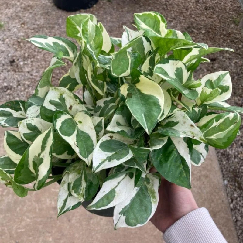 - Stunning Variegated Foliage: The distinctive white and green leaves of this variegated Pothos provide a beautiful visual contrast, brightening up any room and adding a sophisticated touch to your decor.