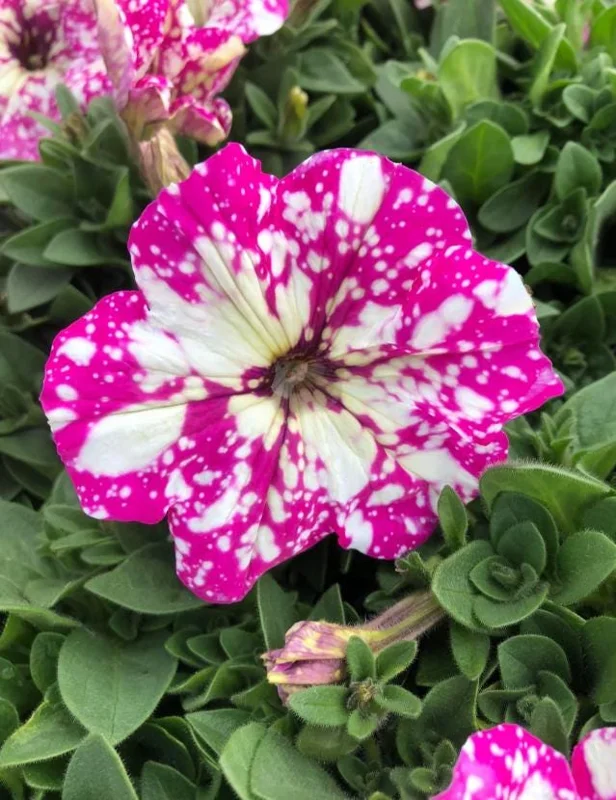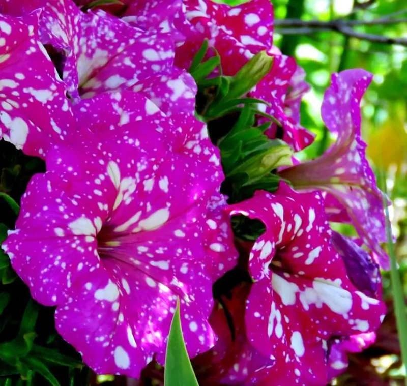 Stunning Bicolor Blooms: Enjoy the unique beauty of bright pink flowers adorned with delicate white spots, creating a ‘pink sky’ effect that is truly mesmerizing. These bicolor petunia flowers will be a focal point in any garden.
