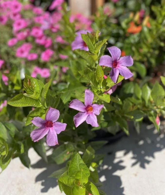 - Q: Can I grow it in a hanging basket? A: Absolutely! Mandevillas look stunning spilling over the sides of hanging baskets, creating a beautiful cascading effect with their vibrant blue blooms.
