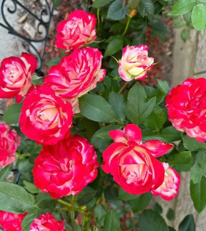 - Attractive Dark Foliage: The intense, dark green foliage provides a beautiful backdrop that makes the vibrant red and cream blooms pop, enhancing the overall aesthetic appeal of the plant.