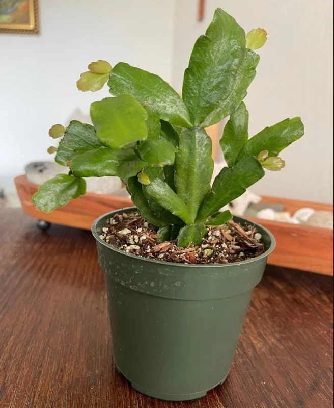 Soil & Temperature: Use a well-draining, airy potting mix. A good blend typically includes cactus or succulent soil mixed with perlite, orchid bark, or peat moss to enhance drainage and aeration. The ideal temperature range for this plant is between 60–75°F (16–24°C). For bud formation, cooler temperatures between 55–65°F (13–18°C) are preferred in the fall. Protect your plant from frost and temperatures below 50°F (10°C), as it is not cold-hardy. Fertilize sparingly during the growing season (spring to early fall) with a balanced liquid fertilizer diluted to half strength. Your holiday cactus starter will flourish with these conditions.