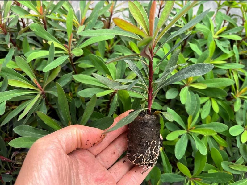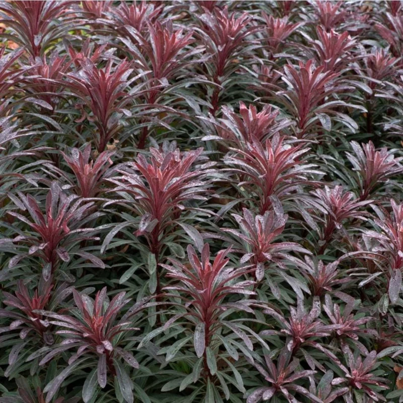 - Distinctive Foliage: The most prominent feature of this Euphorbia hybrid is its rich, deep merlot-colored leaves. This unique coloration provides an eye-catching contrast in any garden, offering year-round visual interest even when not in bloom. The foliage intensifies in color with more sunlight.