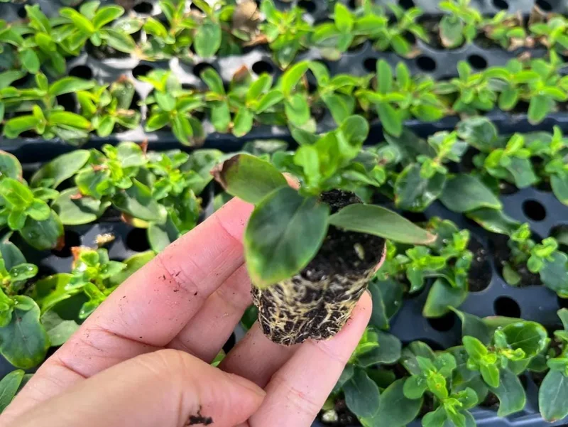 This offering is for one Hypericum Ruby Globo live plant supplied as a well-rooted starter plug. Each plant typically measures between 1-3 inches tall at the time of shipment, providing a strong foundation for future growth. These young plants are ready to be transplanted into your garden or a larger pot upon arrival. The Hypericum Ruby Globo is a moderate-growing shrub that, once mature, can reach a height and spread of 2-3 feet, creating a dense and attractive bush. It produces its distinctive ruby-red berries from late summer through fall. Expect this plant to establish quickly and begin to show significant growth in its first full season.