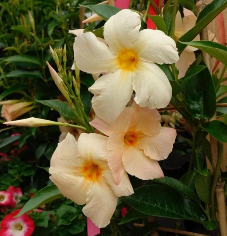 - Extended Blooming Period: Unlike many plants that bloom for only a short season, the Mandevilla is known for its extended flowering period, often blooming from late spring until the first frost. This provides continuous color and interest in your garden for many months.