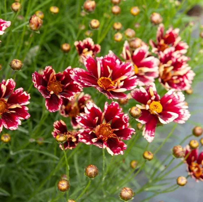 "You will receive set 2 Coreopsis Ruby Frost plugs, live starter plants. The plant is well-rooted in soil. Photos show mature plants for reference only; your plant is a young starter, with no flower for now.