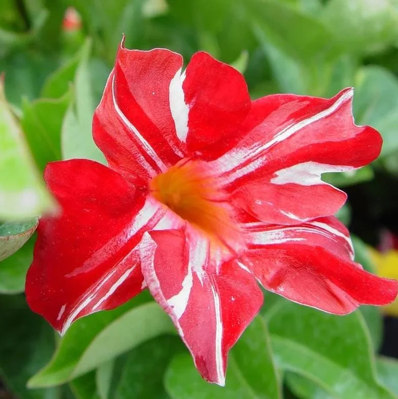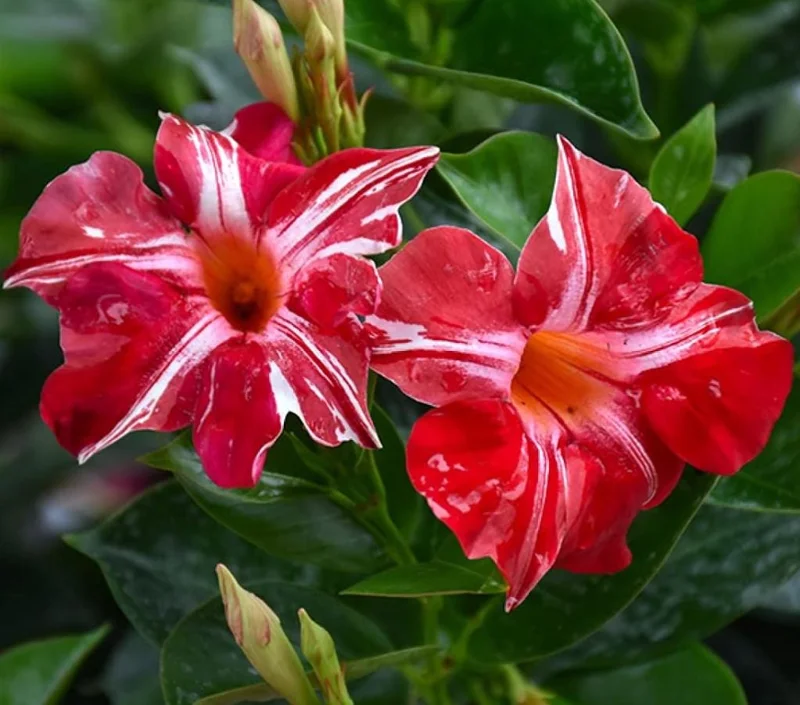 - Vibrant Floral Display: Enjoy a continuous show of large, funnel-shaped white and red dipladenia flowers from spring through fall. These eye-catching blooms are sure to be a focal point in any garden or patio setting. The ‘Stars & Stripes’ variety lives up to its name with its patriotic color scheme.