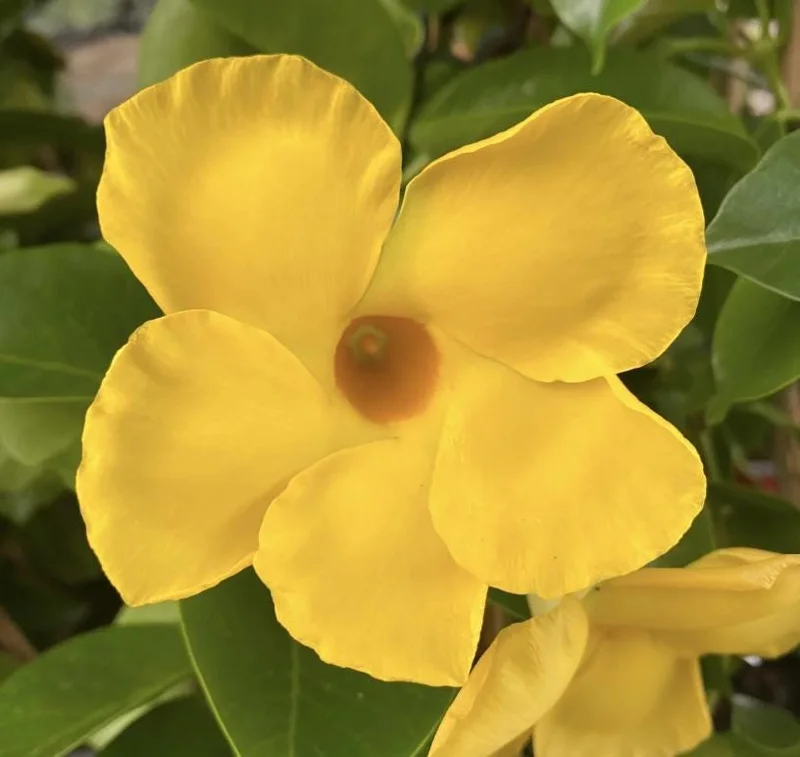 - Q: Can I grow this plant in a hanging basket? A: Absolutely! While it is a vine, the Mandevilla also trails beautifully from hanging baskets, creating a cascading display of vibrant yellow flowers.