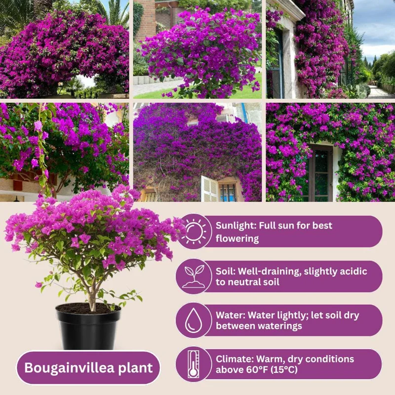 - Q: Is this an indoor or outdoor plant? A: This bougainvillea can thrive both outdoors in warm climates (USDA Zones 9-11) and indoors in bright, sunny locations. Many gardeners in colder regions grow it in containers and bring it inside for winter, making it a versatile indoor bougainvillea option.