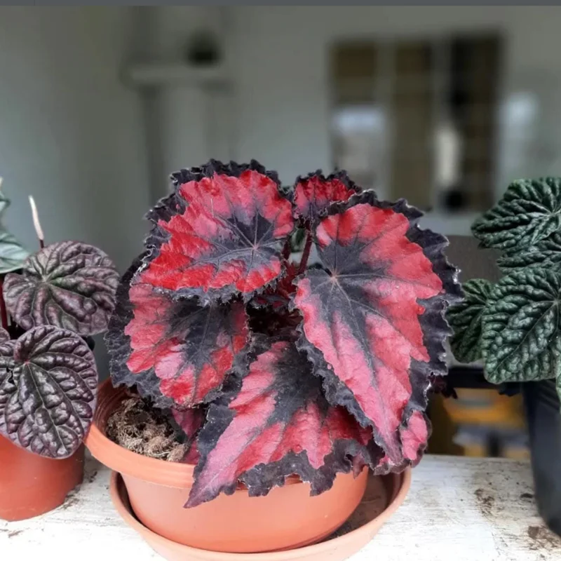 Each plant is carefully selected to ensure it is robust and ready for cultivation. The leaves are broad and healthy, showcasing the characteristic beauty of the begonia. This plant thrives in well-draining soil and prefers bright, indirect light, making it an ideal candidate for an indoor begonia plant or a shaded outdoor feature. Expect this plant to establish quickly in its new home, bringing its vibrant color and lush foliage to your environment. It’s a perfect choice for those looking for a manageable yet striking live houseplant red.