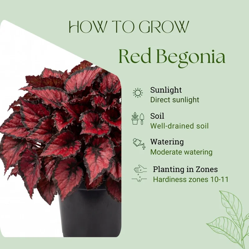 - Q: Will it survive winter in my zone? A: If you are outside of USDA Zones 10–11, your red begonia live plant should be brought indoors or protected from frost during winter months. It is not cold-hardy.