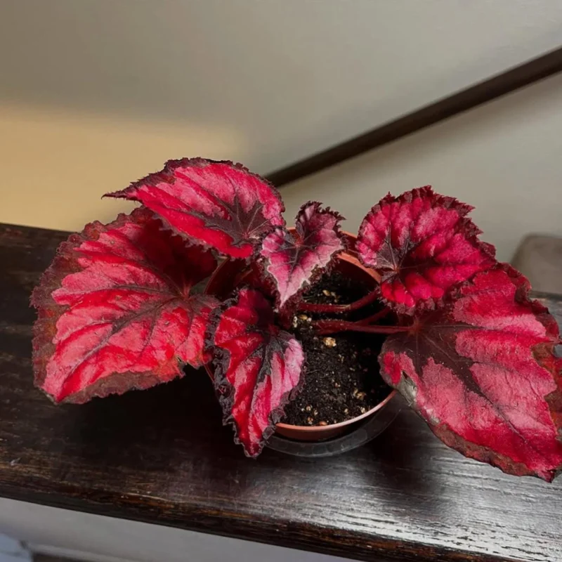 Each plant is carefully selected to ensure it is robust and ready for cultivation. The leaves are broad and healthy, showcasing the characteristic beauty of the begonia. This plant thrives in well-draining soil and prefers bright, indirect light, making it an ideal candidate for an indoor begonia plant or a shaded outdoor feature. Expect this plant to establish quickly in its new home, bringing its vibrant color and lush foliage to your environment. It’s a perfect choice for those looking for a manageable yet striking live houseplant red.