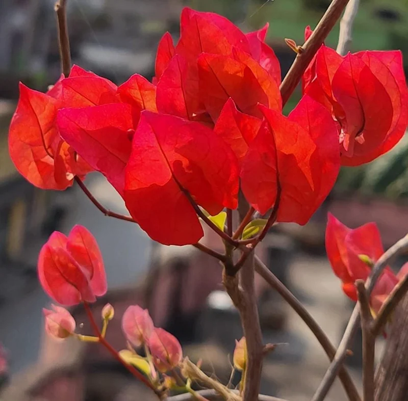Watering Schedule & Soil Moisture: During their establishment phase, water your red bougainvillea live plant regularly to keep the soil consistently moist but not waterlogged. Once established, bougainvillea becomes quite drought-tolerant. In fact, slightly drier conditions can even encourage more prolific blooming. Allow the top few inches of soil to dry out completely between waterings. Overwatering is a common mistake and can lead to root rot or reduced flowering. Reduce watering significantly during cooler, dormant periods, especially in winter. Ensure excellent drainage to prevent standing water around the roots.