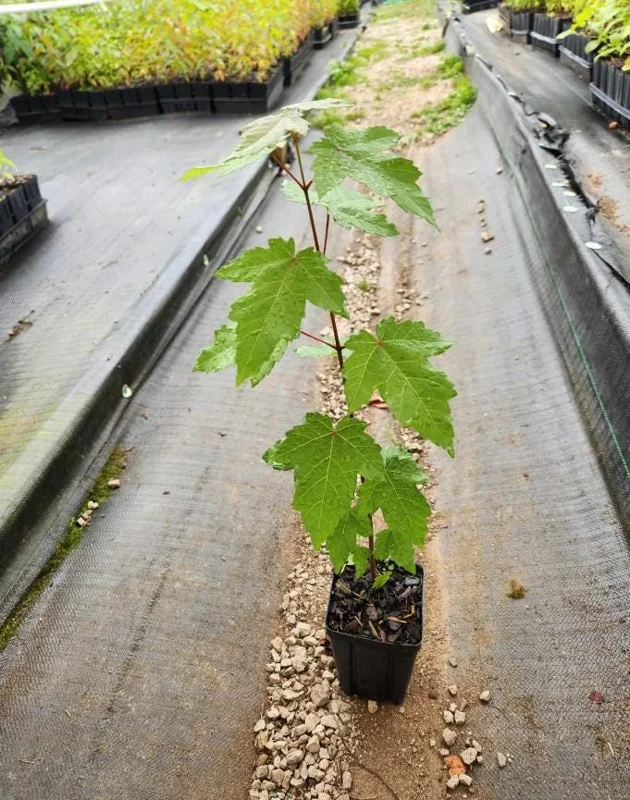 This red maple live tree is specifically cultivated to provide a robust start for your garden. Each plant stands approximately 6-12 inches tall, measured from the soil line to the top of the foliage, and is securely rooted in a 1-quart nursery pot. This size is ideal for transplanting, allowing the tree to quickly establish itself in its new environment. The 1-quart pot provides ample space for the root system to develop before being planted in the ground.