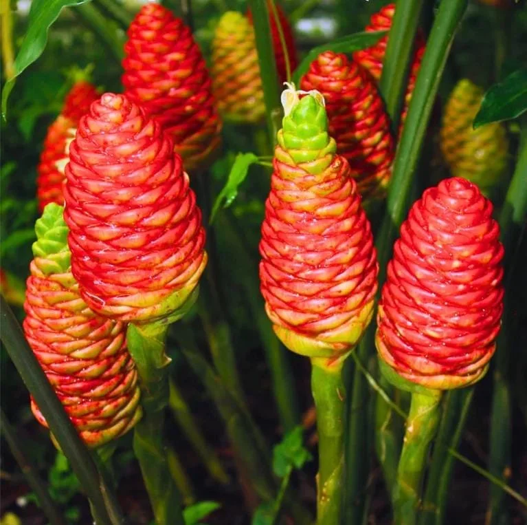 - Ornamental Appeal: The lush, vibrant green foliage and the striking red, pinecone-like flower heads add significant tropical beauty and a unique focal point to gardens and patios.