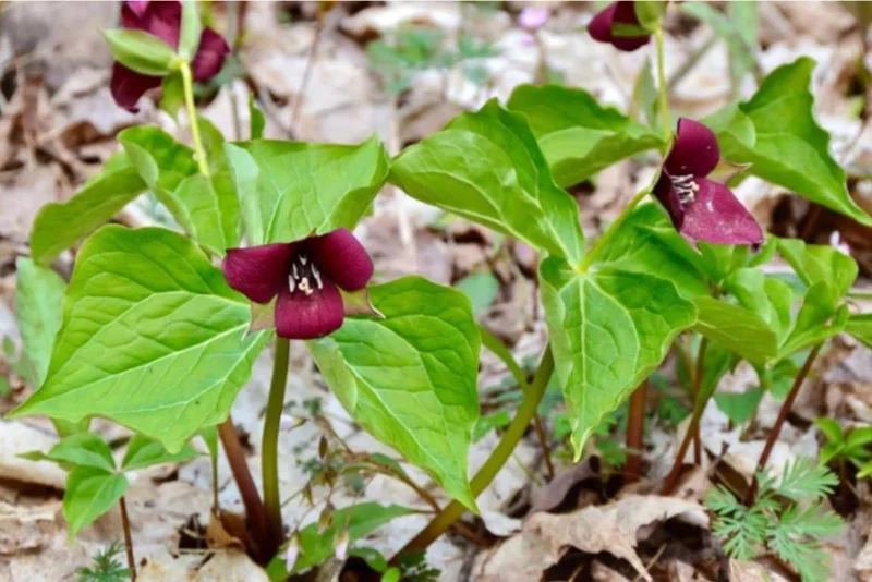 - Early Spring Blooms: Be among the first to welcome spring with the vibrant red or maroon flowers of the Trillium erectum, providing essential early nectar for pollinators.