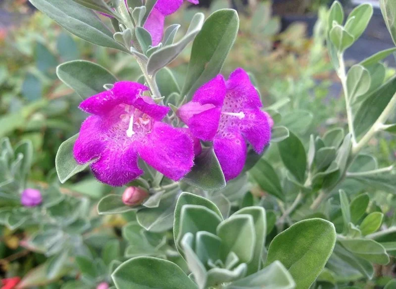 Introduce the captivating beauty of the dwarf Texas sage live plant to your outdoor space. This offer includes a set of two healthy starter plants, each approximately 4-8 inches tall, ready to establish in your garden. Known scientifically as Leucophyllum frutescens Compacta, this compact evergreen ornamental shrub is celebrated for its soft, silver-gray foliage that provides year-round interest. Often referred to as the “Barometer Bush,” it possesses the remarkable characteristic of bursting into a profusion of vibrant purple blooms after rainfall or periods of high humidity, adding dramatic and unexpected color to any landscape. This makes the Leucophyllum frutescens Compacta a unique and dynamic addition for gardeners seeking both beauty and resilience, providing an exceptional option for those looking to add a touch of low-maintenance elegance to their outdoor living areas.