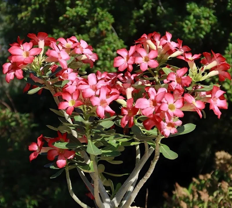 - Unique Caudex Development: Over time, the plant develops an impressive, swollen trunk that acts as a water reservoir, adding to its exotic and sculptural beauty. This distinctive feature is a hallmark of the Desert Rose, enhancing its appeal as a desert rose indoor or out.