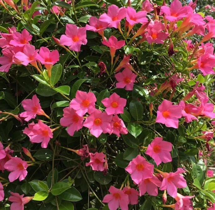 - Versatile Growth Habit: As a climbing and trailing vine, it’s ideal for vertical gardening on trellises, fences, arbors, or in hanging baskets and containers, offering flexibility in design. You can train them to climb or allow them to cascade for different effects, demonstrating just how to grow mandevilla in various settings.