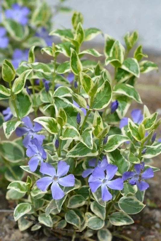 Transform your garden into a tapestry of color and texture with our exquisite set of 6 variegated Vinca Minor live plant. This award-winning perennial, commonly known as creeping periwinkle ground cover, is celebrated for its lush, evergreen foliage adorned with unique green and white variegation. Beyond its attractive leaves, the plant bursts into a spectacular display of large, vibrant blue-violet flowers, creating a captivating visual from April through September. Ideal for filling in spaces, controlling erosion, or adding a sophisticated touch to borders, this hardy ground cover ensures beauty with minimal effort. It’s an excellent choice for gardeners seeking a resilient and visually appealing plant that provides continuous interest throughout the growing season.