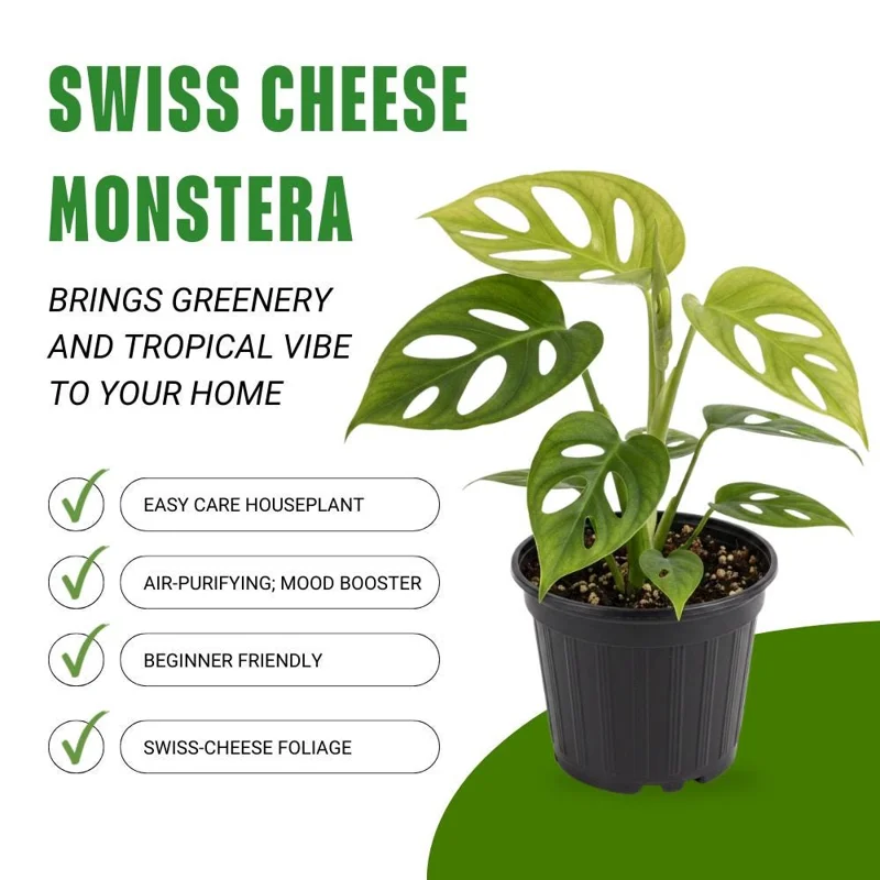- Promotes Well-being: Bringing nature indoors has been shown to reduce stress, improve mood, and increase overall feelings of well-being. The vibrant greenery and unique form of the swiss cheese monstera plant can create a calming and refreshing atmosphere.